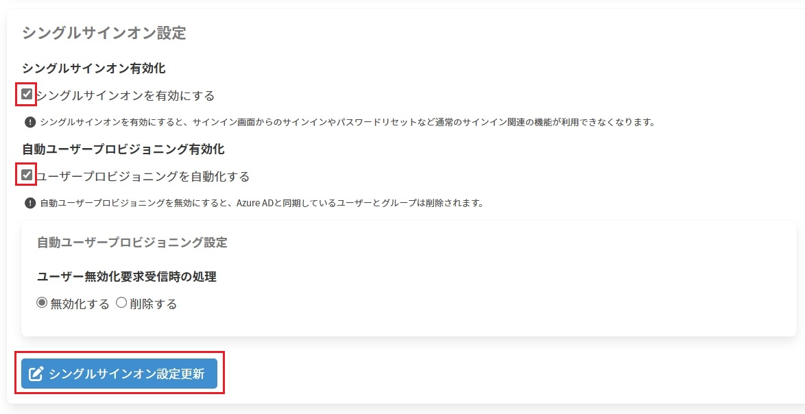 - [シングルサインオンを有効にする]にチェックを付けます。