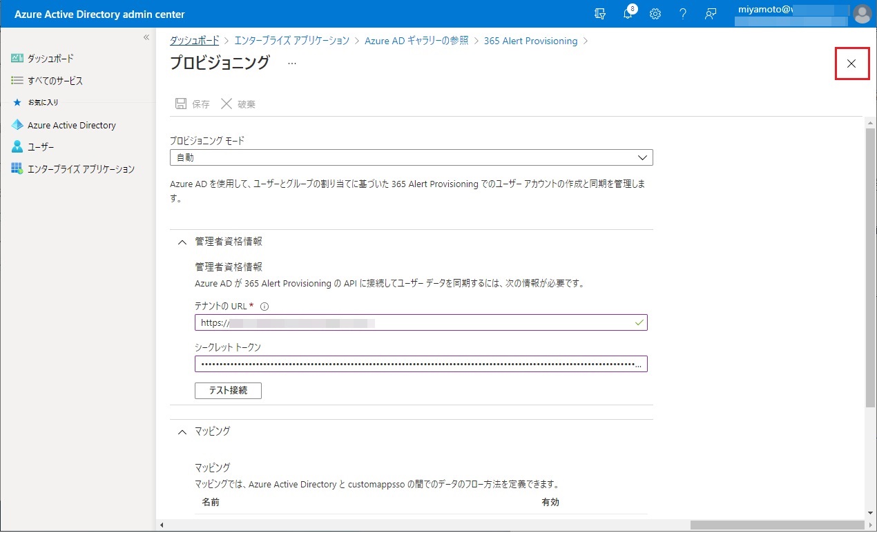 右上の[×]をクリックして[属性マッピング]画面を閉じます。