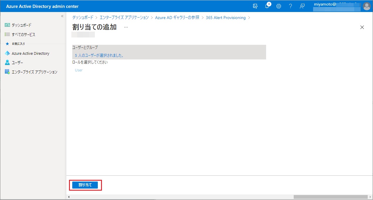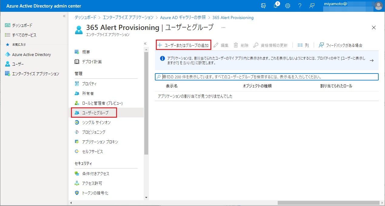 以下では、ユーザーが追加される度に手動で、365 Alertに同期するユーザーまたはグループを割り当てる方法を記載します。