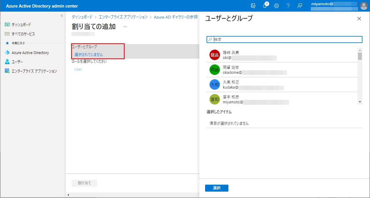 申請したドメインのユーザー以外を選択すると、同期処理時にエラーが発生して、同期処理が止まってしまう可能性があります。note入れ子のグループは、Azure ADでサポートされていないため、指定出来ません。