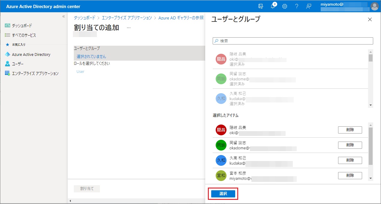 上記で作成したグループを「3-1.ユーザーまたはグループの割り当て」の手順にしたがって割り当てます。