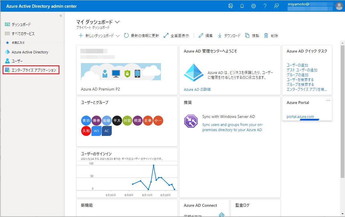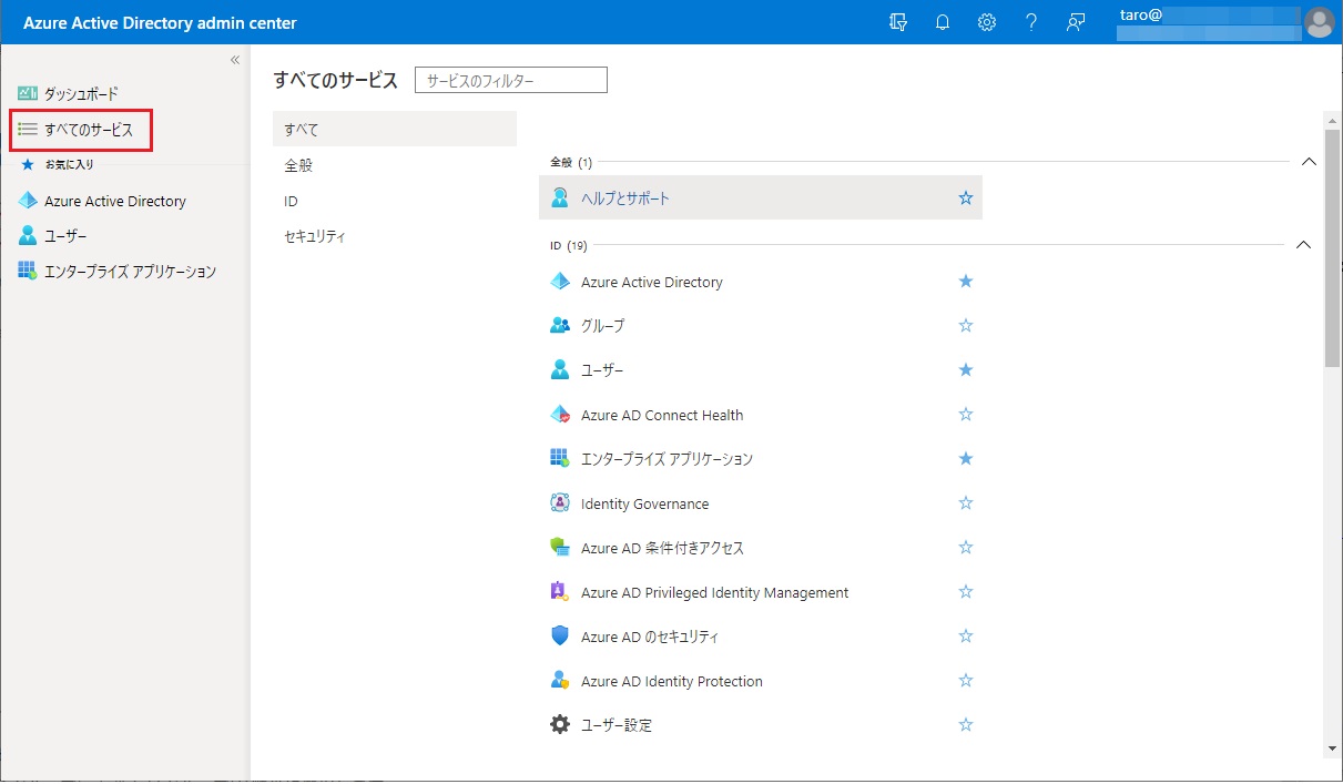 管理者アカウントで、以下のURLからAzure AD管理センターにサインインします。