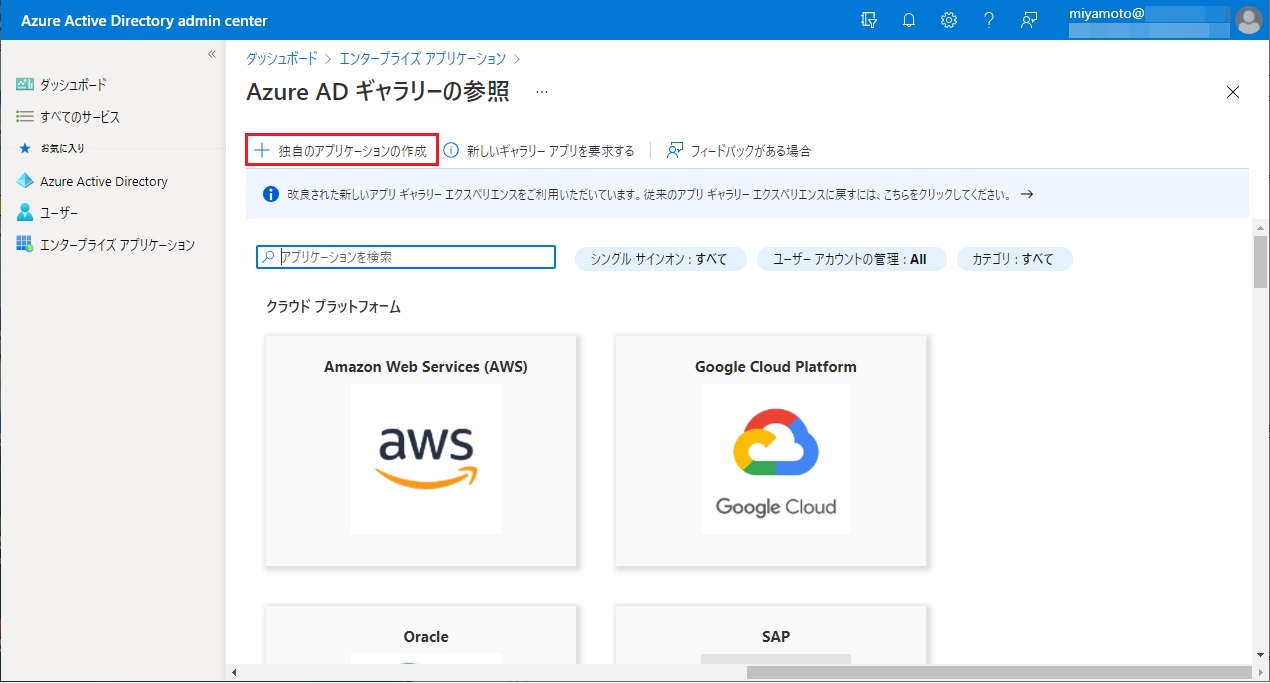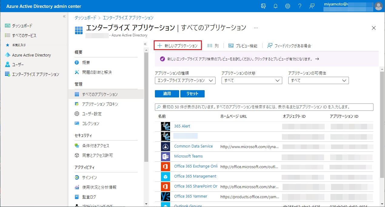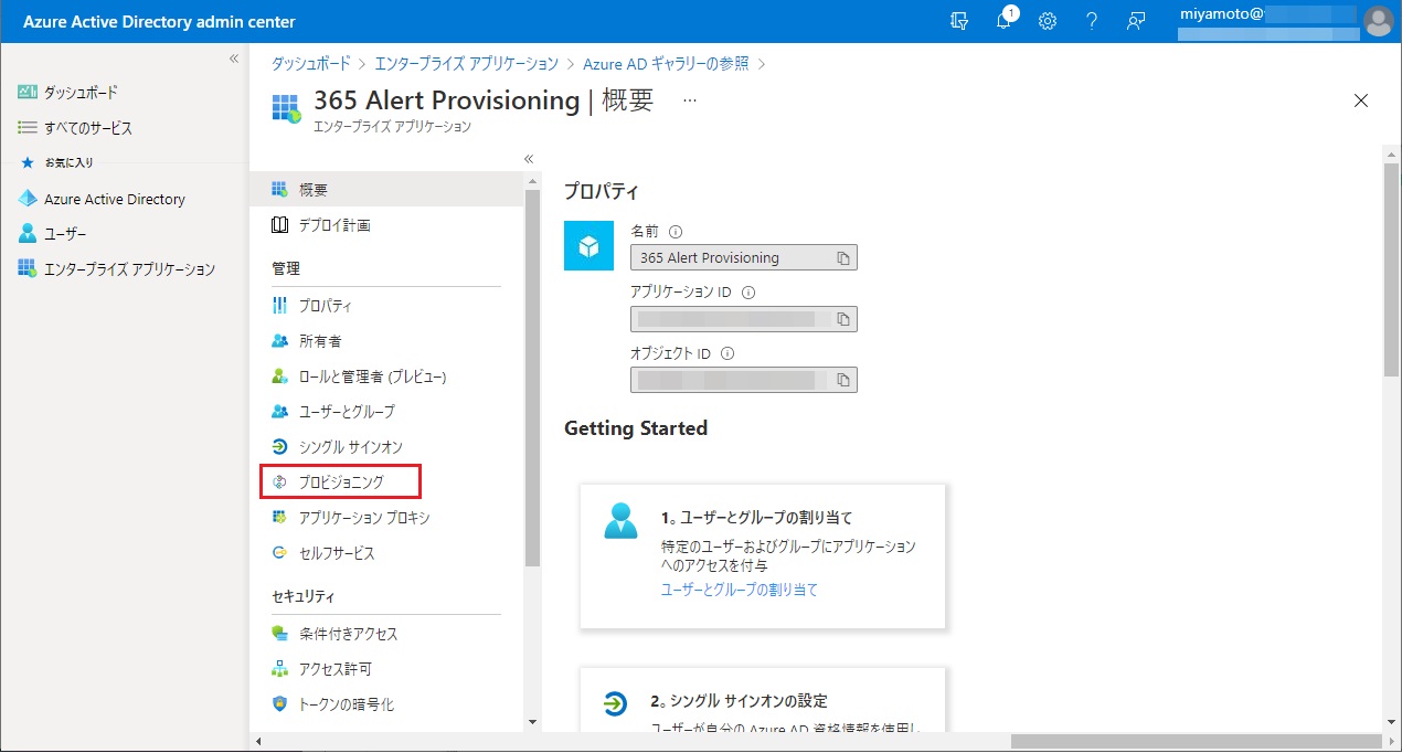 新しいアプリがエンタープライズ アプリケーションの一覧に追加され、そのアプリの管理画面が開きます。