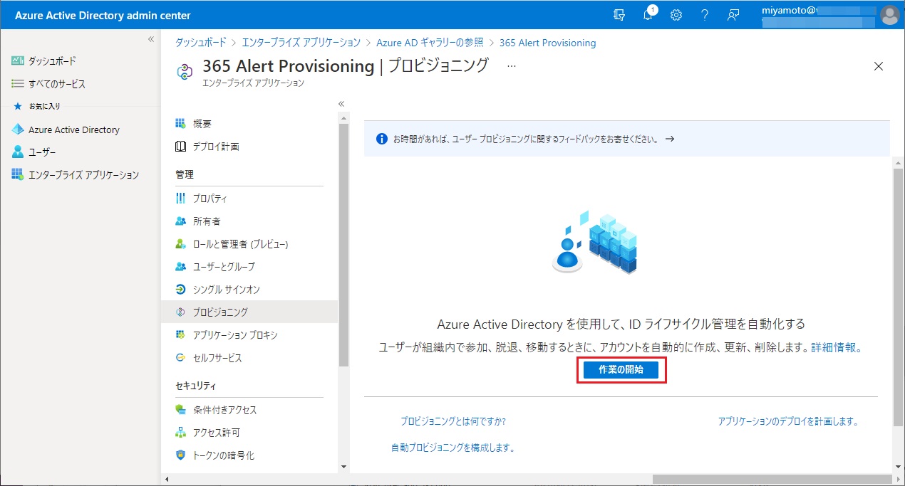 - [ユーザープロビジョニングを自動化する]にチェックを付けます。