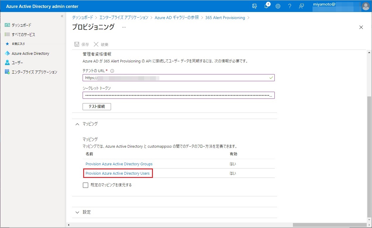 Azure ADに登録されているユーザーとグループを自動的に365 Alertに同期するための設定を行います。