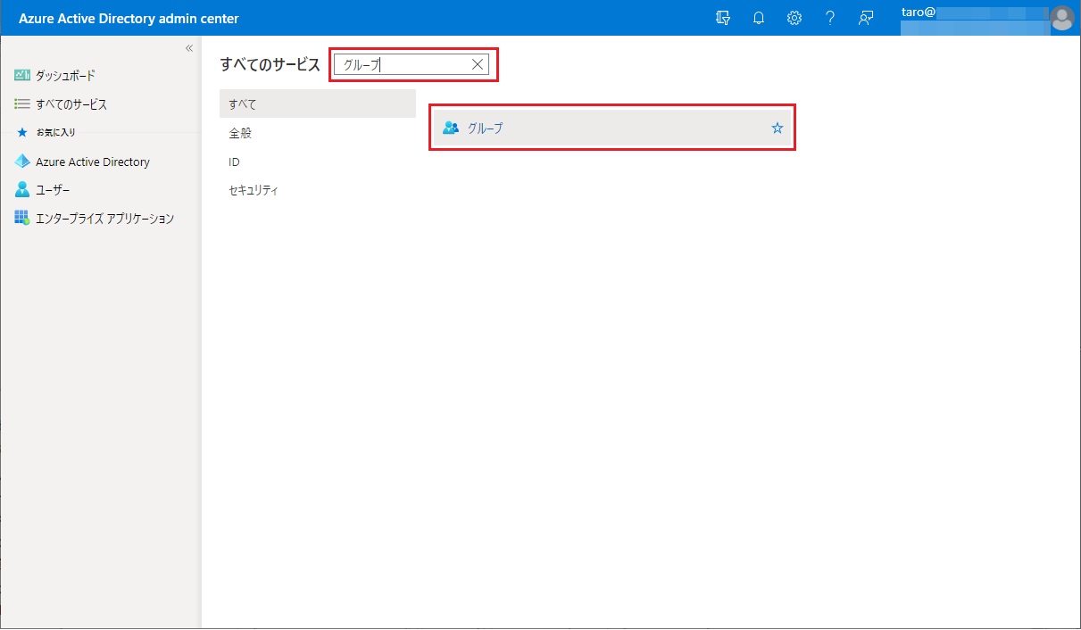 [サービスのフィルター]で[グループ]を検索して選択します。