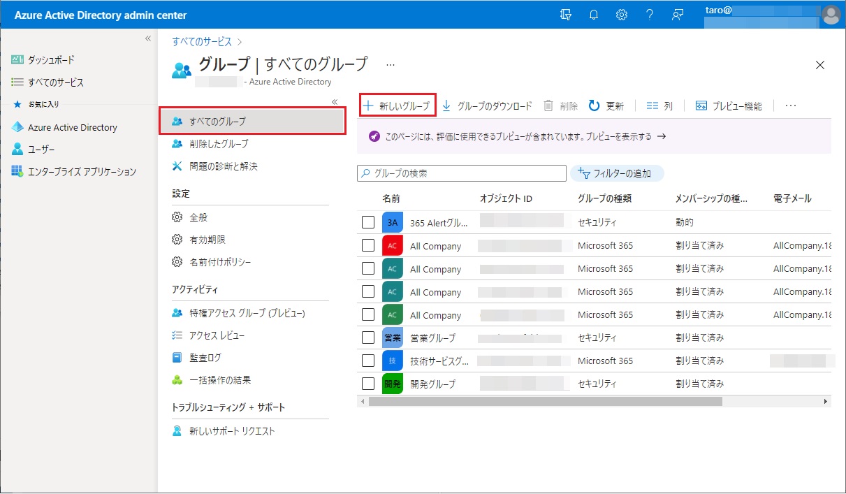 項目 設定値 グループの種類 セキュリティ グループの説明 <任意のグループの説明> グループに Azure AD ロールを割り当てることができる いいえ グループ名 <任意のグループ名> メンバーシップの種類 動的ユーザー