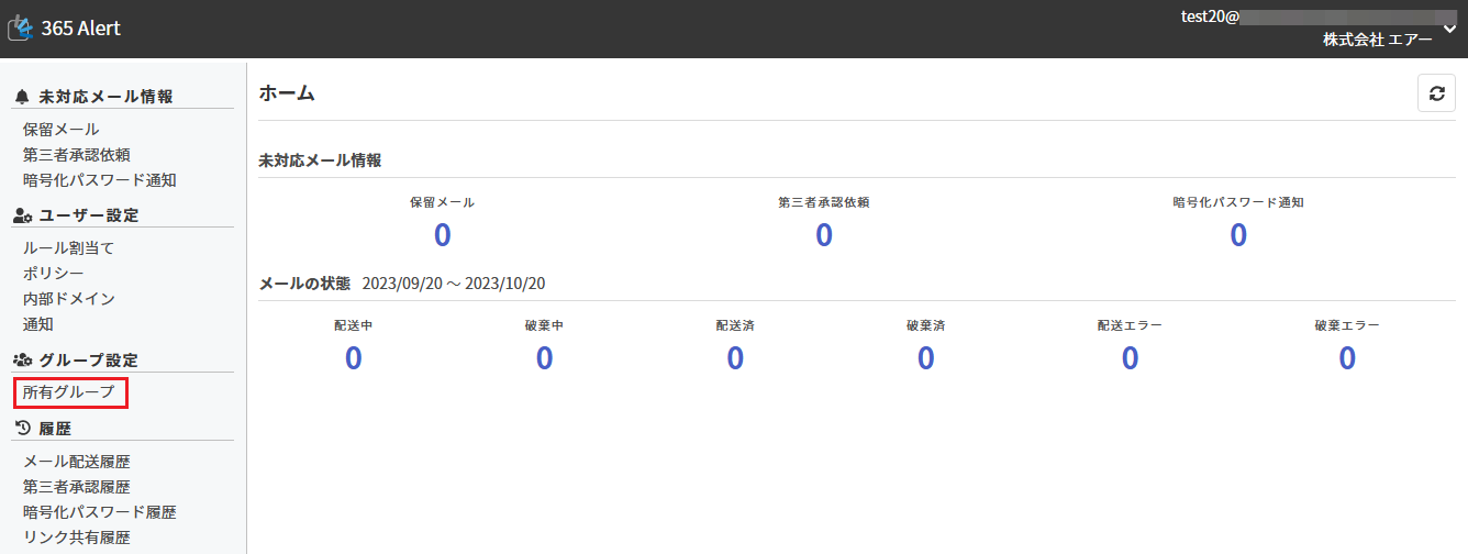 画面左のメニューから[グループ設定]の[所有グループ]をクリックします。
