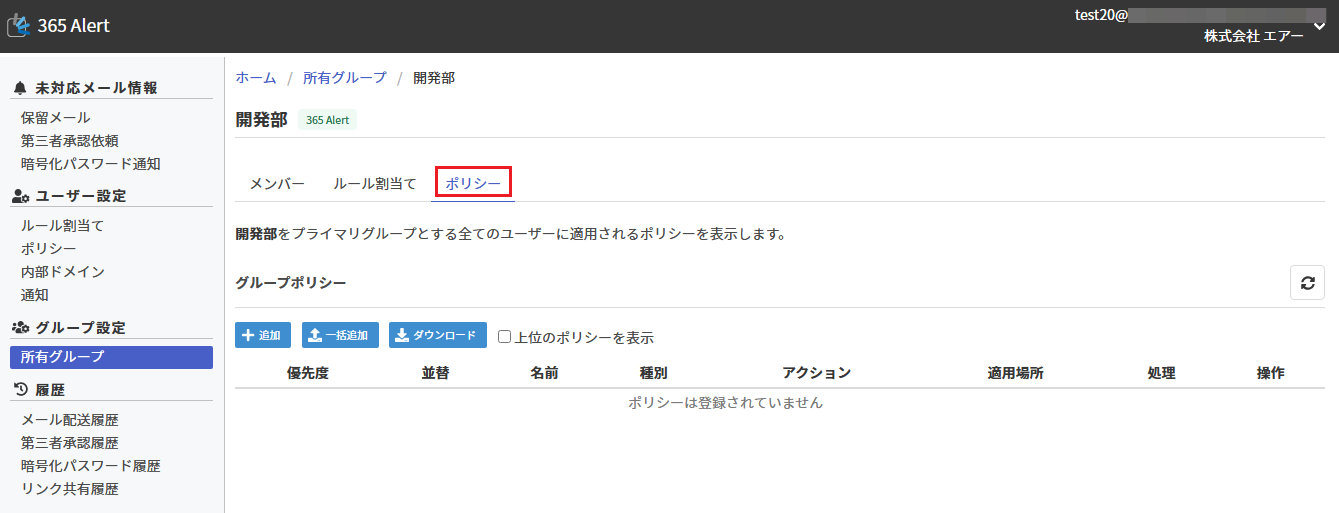 以下では グループポリシー を設定する手順を記載します。 グループポリシーは一般ユーザーアカウントとテナント管理者アカウントが設定可能です。