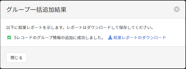 結果レポートをダウンロード後、[閉じる]をクリックします。