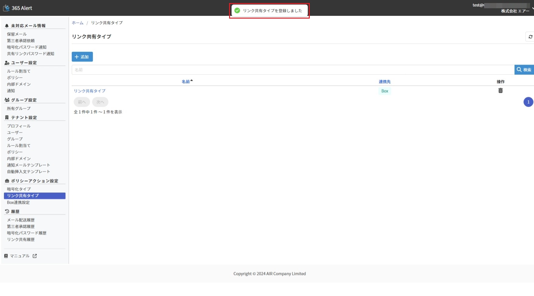 ここで作成した リンク共有タイプは、リンク共有ポリシーのオプションとして指定します。