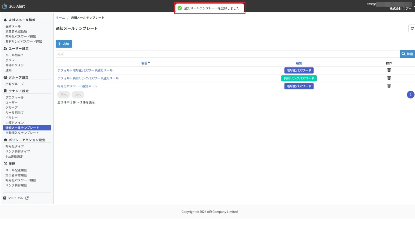 ここで作成した通知メールテンプレートは暗号化タイプとリンク共有タイプで使用します。