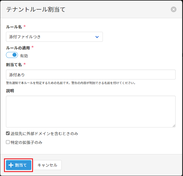任意のルールを設定し、[割当て]をクリックします。