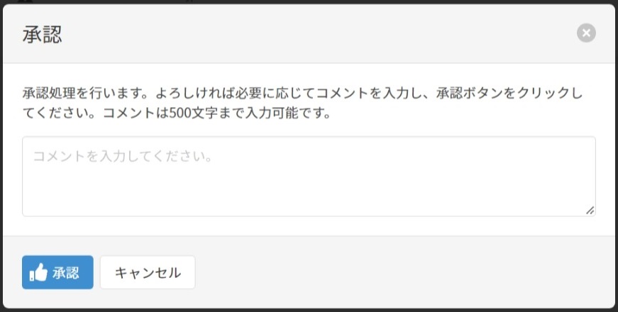 [承認]ボタン、[否認]ボタンをクリックすると、以下の画面が表示されます。必要に応じて500文字までコメントを入力することが可能です。