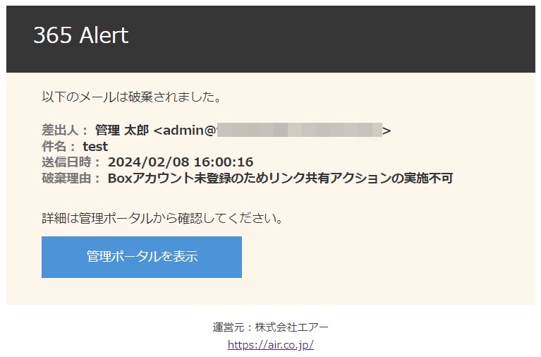 | 共有リンクの通知方法の値 | 実際の通知 |