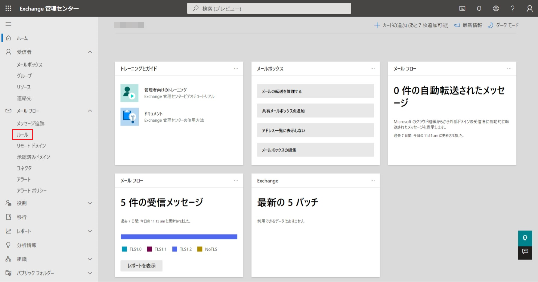 画面左のメニューから[メールフロー]>[ルール]をクリックします。