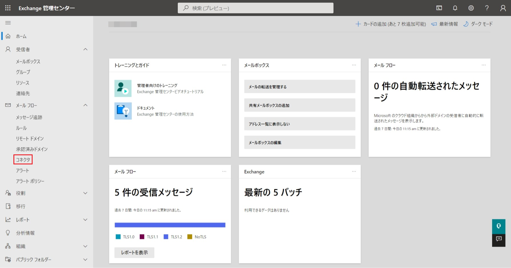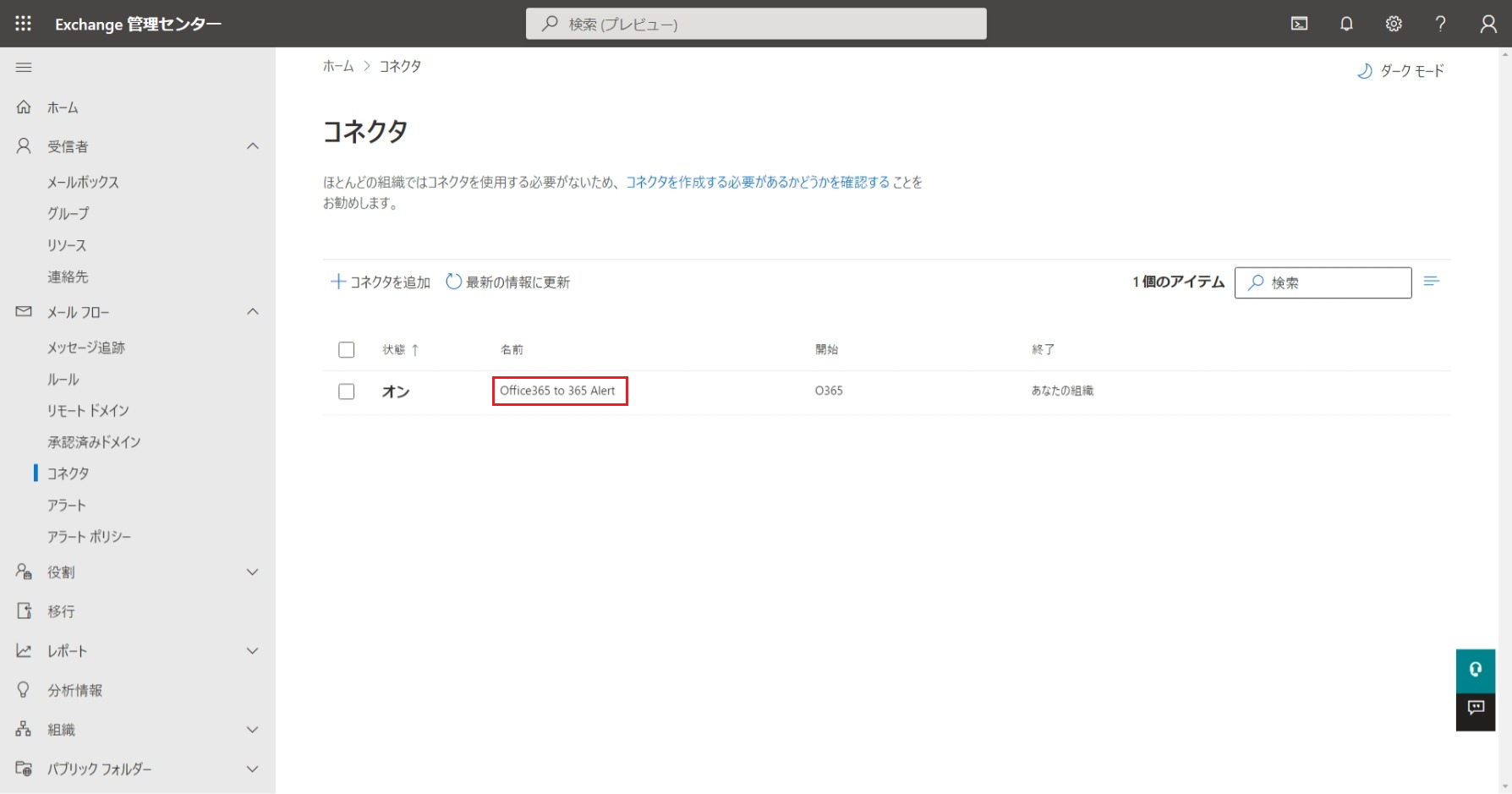 画面左のメニューから[メールフロー]>[コネクタ]をクリックします。