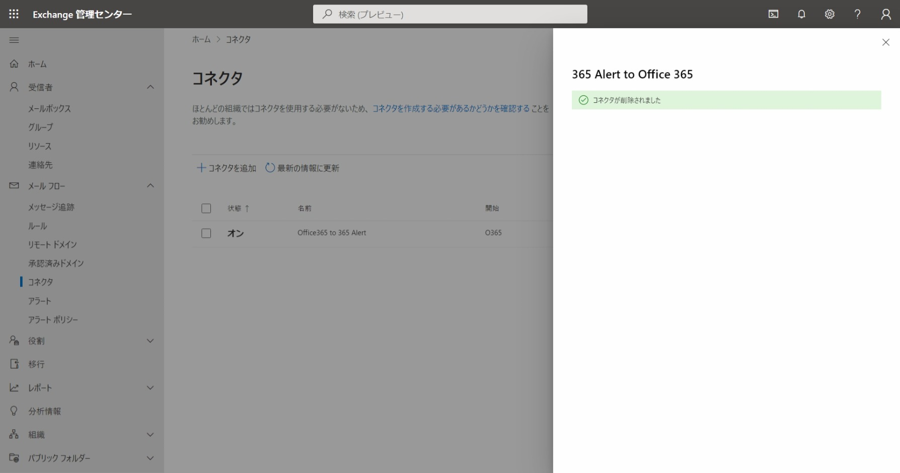 Office 365 to 365 Alertコネクタを削除します。